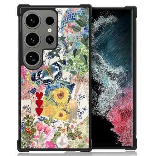 Flivro Case for Samsung Galaxy S25 Ultra,Military-Grade TPU Protection with Shock-Absorbing Edges,Slim Anti-Drop Compatible with Samsung Galaxy S25 Ultra Case -Collage Flowers Butterfly Disco