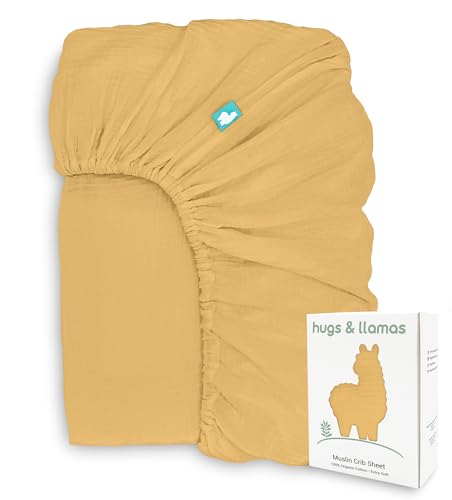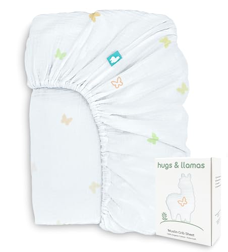 hugs & llamas | 100% Organic Cotton Muslin Fitted Crib Sheet | Premium Baby Crib Sheets for Boys & Girls Crib Fitted Sheet | Organic Crib Sheets Girl & Boy Crib Sheets Neutral | Crib Mattress Sheet