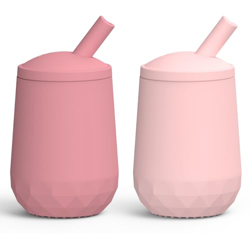 Seposeve 2 Pack Silicone Straw Cups, Leak-Proof Baby Sippy Cup for 6 Months +, Spill Proof Toddler Cup with Straw 12-24 Months, Easy to Hold, Flow Control, 4 oz, Purple Pink