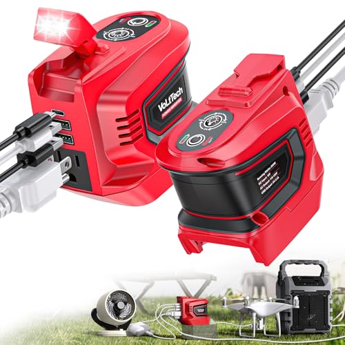 2 Packs Real 200W Power Inverter Compatible with Milwaukee 18V, VoLtTech Battery Inverter DC 18V to AC 110V Portable Phone Charger Generator Power Supply with 2 USB Ports & 1 Type-C & 1 AC Outlet