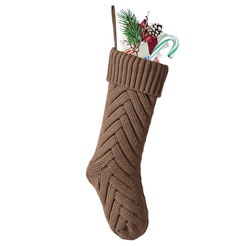 Nanou Christmas Stockings 18" Knitted Christmas Socks Family Holiday Decorations Great Big Stockings for Gift to Family, Friends and Kids (Brown, Length 18",Pack 1)