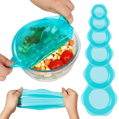 Silicone Stretch Lids for Food Storage in Fridge, Reusable Elastic Bowl Covers for Cup, Cans, Jars, Round & Rectangle Container, Food Grade Silicone Microwave Food Cover, Heat-Resistant, Blue, 6PCS