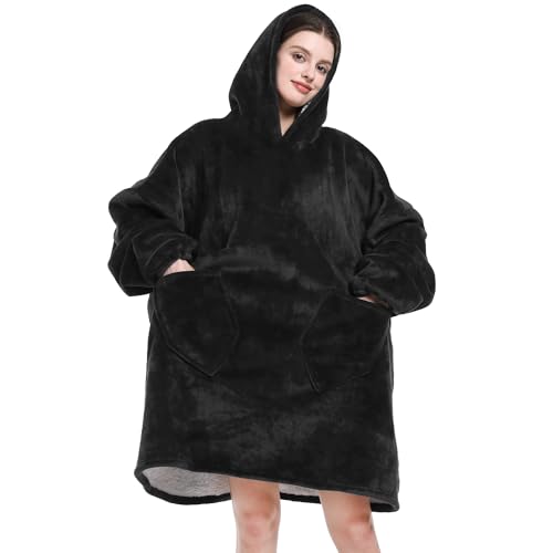 Black Wearable Blanket Hoodie,Oversized Sherpa Sweatshirt Blanket Hooded, Cozy Soft Plush Hooded Blanket for Adult Teens, Warm Christmas Birthday Gifts for Women Mom Her (Blue)