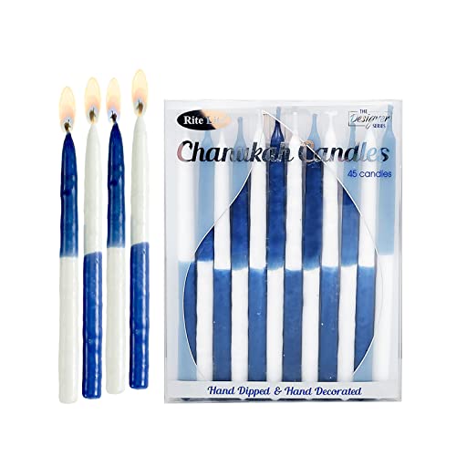 Rite Lite Natural Chanukah Candles, Pack of 45 Candles, Hanukkah Candles Bulk, Two Tone Hanukkah Candles for Menorah (Blue & White)