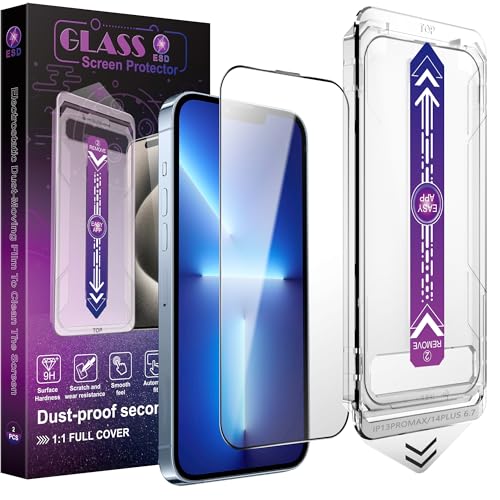 CHISHA 2-Pack Screen Protector Tempered Glass for iPhone 13 Pro Max and iPhone 14 Plus 6.7-Inch, Auto Dust Removal, No Bubbles, High Definition Clear, Easy Installation