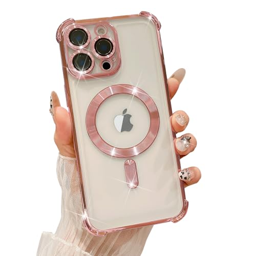 MGQILING Compatible for iPhone 16 Pro Max Magnetic Transparent Case, Luxury Clear Plating Anti-Drop Phone Case, Compatible for MagSafe for Women Girls Protector Back Cover(Pink)