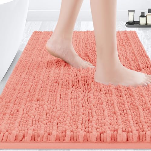 ACCUMTEK Upgrade Luxury Coral Bathroom Rug Mat 36"x24", Ultra Soft Thick Absorbent Bath Mats, Non Slip Chenille Toilet Mat for Bathroom, Bedroom, Kitchen, Shower, Tub