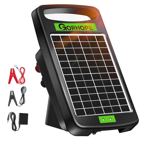 GORHOPE 20 Miles Solar Electric Fence Charger,Output 0.32J Electric Fenc e Charger,24-Hour Uninterrupted Protection Solar Fence Chargers,Top Christmas Gifts for Farmers & Ranchers