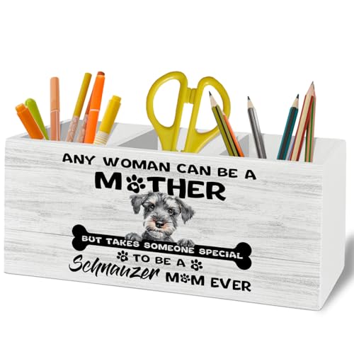 XLDLIOO Schnauzer Gifts Pen Pencil Holder Organizer for Desk Accessories, Dog Mom Lovers Owner Gifts for Women, to Be a Schnauzer Mom Ever Wooden Box Sign Desk Decor for Home Office Decoration