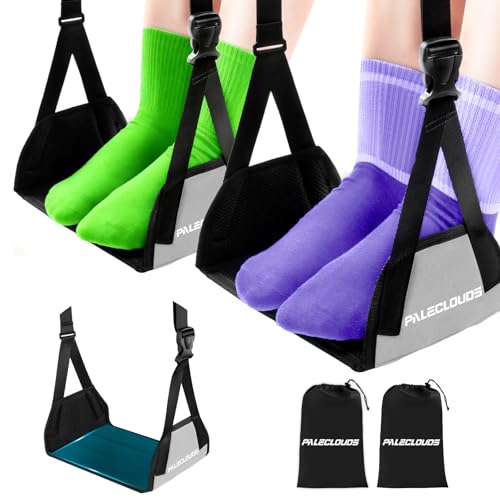 Foot Hammock for Plane Travel, No Collapse Thickened Bamboo Airplane Foot Rest for Long Flight, Desk Foot Hammock with Extended Adjustment Strap to Relax Your Feet, Foot Sling Travel Essentials