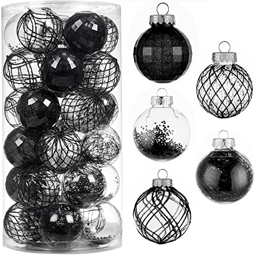 CristBest 30ct Christmas Ball Ornaments-60mm/2.36" Shatterproof Clear Plastic Xmas Balls Baubles Set with Stuffed Delicate Sparkling, Hanging Christmas Tree Decorations (Black).