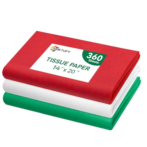 Simetufy Christmas Tissue Paper for Gift Bags, 360 Sheets 14 x 20 Inches Christmas Tissue Paper Sheets Bulk, Red Green and White for Gift Wrapping, Crafts, Birthday, Holiday Decor and DIY