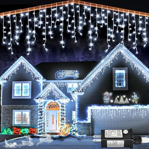 99ft Icicle Lights for Outside, White Christmas Lights Outdoor Indoor, 1216 LED Twinkle String Light with 228 Drops Short Curtain Lights for Thanksgiving Room Home Wall Bedroom Window Tree Decorations