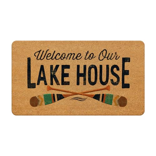 Nogrit Lake House Decor Coir Doormat, Welcome to Our Lake House Paddle Door Mat Outdoor, Lake House Welcome Mats Outdoor, Lake House Decor for The Home, 17x30
