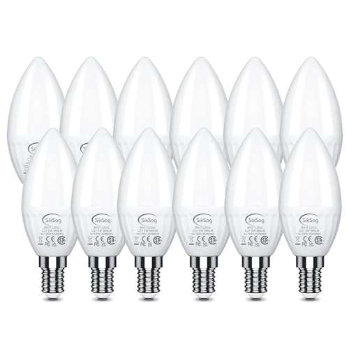 SikSog E12 LED Candelabra Light Bulbs 50 Watt Equivalent,Daylight 5000K Chandelier Bulb 560LM,Candle Bulb Base E12 Ceiling Fan Bulb B11 Type for Chandelier Non-Dimmable (12 Pack)