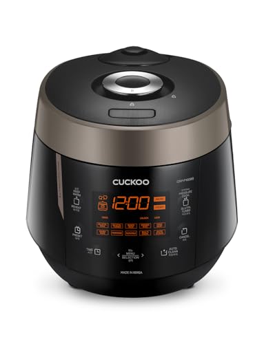 CUCKOO High Pressure Rice Cooker 10-Cup Uncooked / 20-Cup Cooked with Nonstick Inner Pot, Large Rice Maker with 13 Menu Options and Steam Plate, Fuzzy Logic Tech, Voice Guide, Black (CRP-P1009SB)