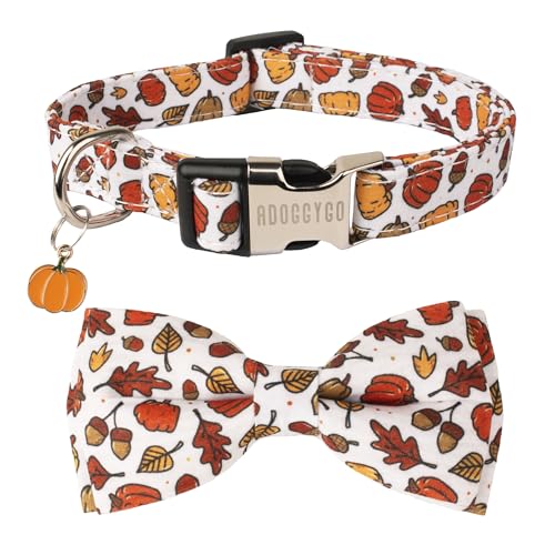 ADOGGYGO Thanksgiving Dog Collar with Bowtie, Fall Pumpkin Pet Thanksgiving Collars with Detachable Bow, Adjustable Fall Collars for Small Medium Large Dogs (Medium)