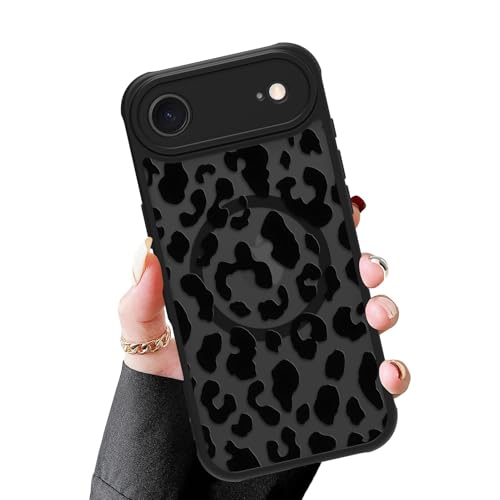 MZELQ Magnetic Case for iPhone Air 6.5 Inch, Clear Leopard Cheetah [Compatible with Magsafe Charging] Translucent Matte Hard Shockproof Camera Protection Cover for Women Men, Frosted Black