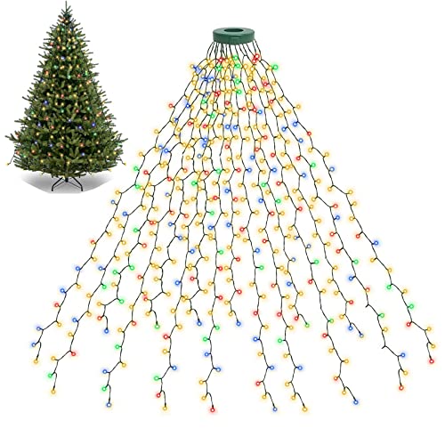 BOLWEO Christmas Tree Lights, 592LED 16 Lines Christmas Lights for Tree 8 Modes for 8ft-10ft Christmas Tree, UL Certified Indoor Outdoor Christmas Decorations 16 * 9.8ft Drops Multi-Colored