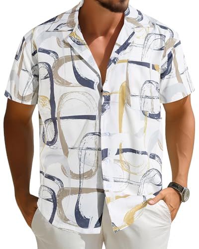 APTRO Men's Hawaiian Shirt Short Sleeve Tropical Vacation Button Down Beach Floral Palm Shirts Ink Circle 4X
