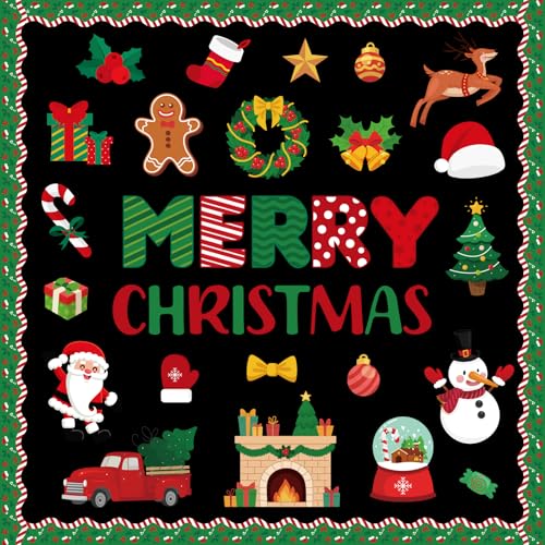 52Pcs Christmas Bulletin Board Decorations Set, Merry Christmas Holiday Bulletin Board for Xmas Holiday Party School Classroom Decoration Door Reading Room Home Wall Supplies