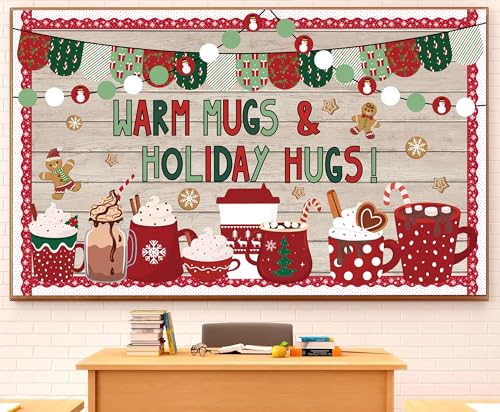 Christmas Bulletin Board Decorations Hot Cocoa Cup Bulletin Board Decoration Set Christmas Bright Classroom Decorations Warm Mugs & Holiday Hugs Cutouts for Winter School Home Office Wall Decor