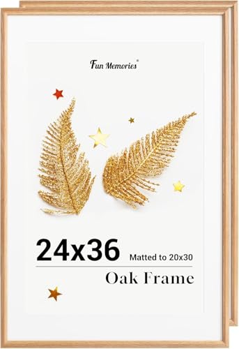 Fun Memories 24x36 Picture Frame, Solid Oak Wood Frame for Wall, 24x36 Matted frame for 20x30, Natural Oak Wood Frame for Home Decor, Set of 2
