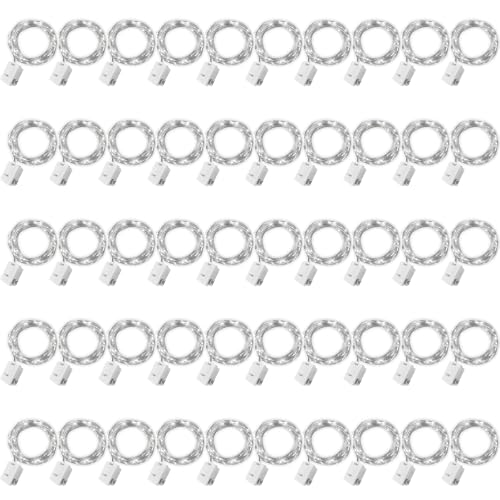 50 Pack Fairy Lights Battery Operated - 3 Speed Modes, 7Ft 20 LED String Twinkle Lights, Waterproof Copper Wire, Mini Firefly Light for Mason Jars Vases Christmas Decor, White