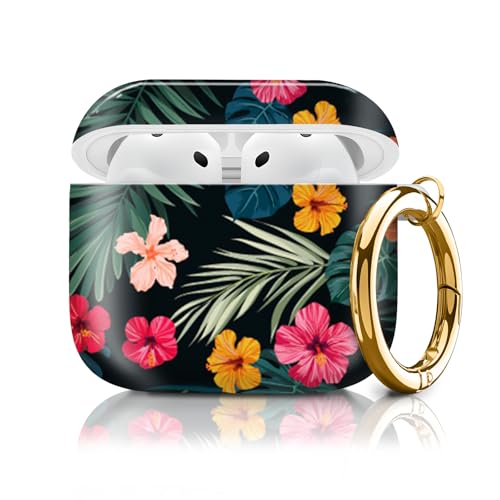 Compatible with Apple Airpods 4th Generation Case Cover(2024), Protective TPU Soft Cases Cover Rugged for Airpod 4 Case with Golden Keychain for Women Men(Flowers and Plants)