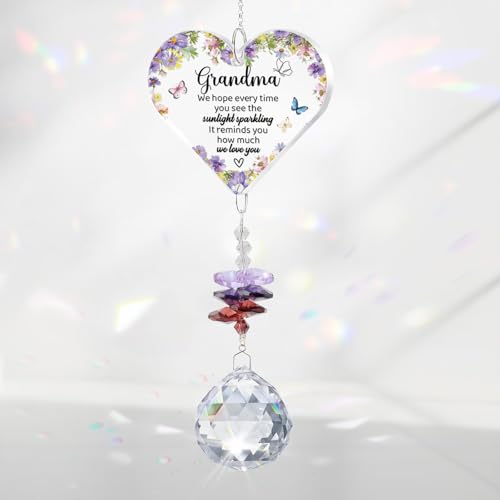 Aremdys Grandma Gifts for Christmas, Heart-shaped Crystal Suncatcher Rainbow Maker for Window Hanging Gifts for Grandma from Grandson Granddaughter, Nana Gigi Gift for Garden Yard Decor from Grandkids
