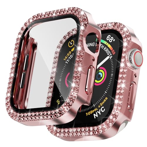 TSOGIA Bling Case for Apple Watch Apple Watch SE 3 (2025)/ SE2/ SE/Series 6/5/4 44mm Screen Protector, Woman Glitter Crystal Rhinestone Scratch Resistant Overall Protective Bumper Cover, Pink