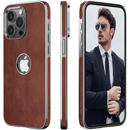 LOHASIC for iPhone 15 Pro Max Case Leather – Soft Designer Cover with Logo Cutout, Classic Aesthetic Minimalist i Phone 15 Pro Max Slim Case, Luxury Thin Cases for Men Women- Brown