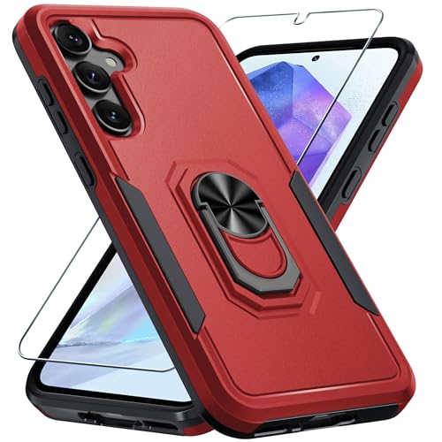 Janmitta Compatible with Samsung Galaxy A35 5G Case with Screen Protector,Heavy Duty Shockproof Full Body Phone Cover Built in Metal Ring Holder Kickstand,2024 Red