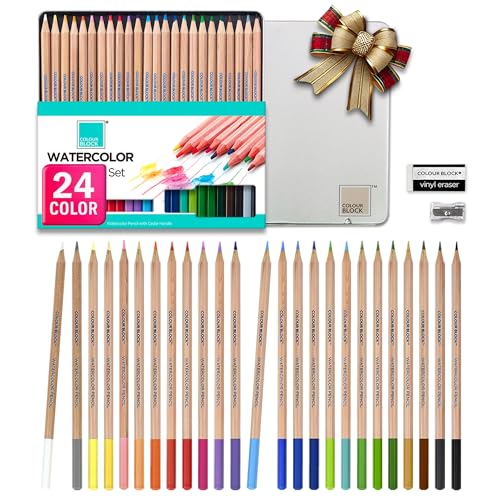 COLOUR BLOCK 24PC Premium Cedar Wood Watercolor Pencil Set with I Ideal pencil kit for Drawing, Sketching, Coloring and Painting travel watercolor pencils