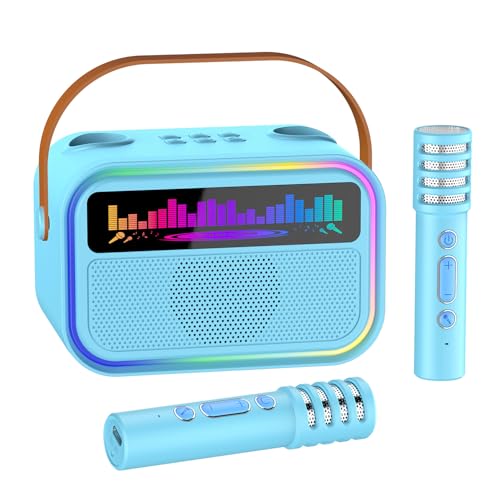 TOZDTO Karaoke Machine for Kids Adults, Birthday Gifts Toys for Girls Boys Age 3-12+,Mini Portable Bluetooth Singing Speaker with 2 Wireless Microphones & LED Lights (Blue)