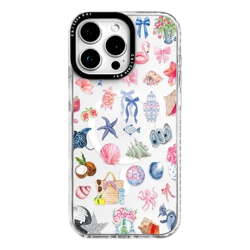 ChiCaseVer for iPhone 15 Pro Max Case, Tropical Beach Collage Pattern with Shells, Vintage Slim TPU Compatible with MagSafe, Military-Grade Drop Protection & Camera Protection for Women Girls