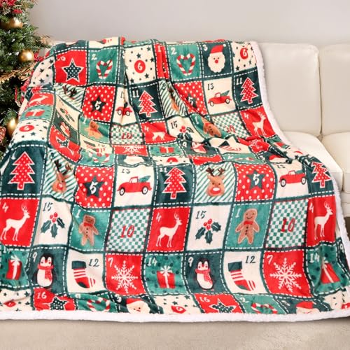 Gogreen Christmas Sherpa Fleece Throw Blanket for Couch Bed Sofa Adults -Soft and Warm Blanket for Winter, Thick and Fuzzy Throw Blanket (Throw - 50" x 60") - D