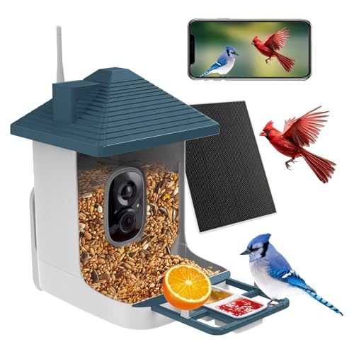 Smart Bird Feeder with Camera,AI Identify Species,Bird House with Solar Powered,Instant Arrival Alerts,64GB Card Auto Record Video,2K Capture Video,Live View for Lover (Blue+64G Card)