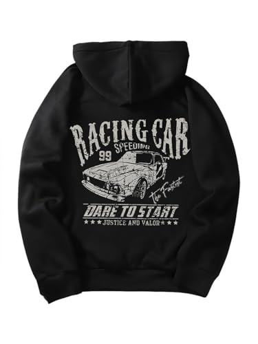 RoseSeek Men's Letter Graphic Hoodies Long Sleeve Faith Over Fear Hoodies Pullover Sweatshirt Streetwear Car Black Medium