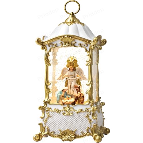 Priddop Nativity Snow Globe Christmas Decorations Indoor Angel Nativity Scene Gifts Classic Relief Texture Musical Glitter Snowfall USB/Battery Timer Lantern 12.5 inch
