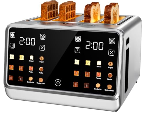 Touch Screen Toaster 4 Slice, Digital Smart Dual Control Touchscreen, Stainless Steel, 6 Toast Types & Levels include Bread, Bagel, with Defrost/Reheat/Single Slot Toasting Function
