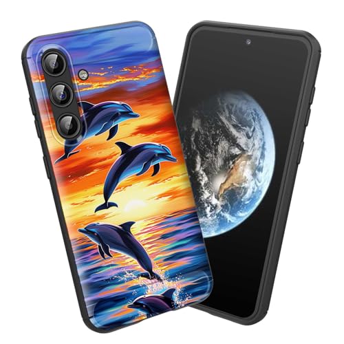 smauncucn for Galaxy S24 FE Case,Soft TPU Slim Fashion Anti-Fingerprint Non-Slip Protective Phone Case Cover for Samsung Galaxy S24 FE (6.7") 2024,Dolphin Jumping Ocean Sunset Beach