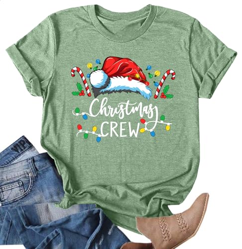 Christmas Crew Shirts for Women Xmas Shirt Top Short Sleeve Christmas Lights Print Graphic T Shirt Holiday Tees