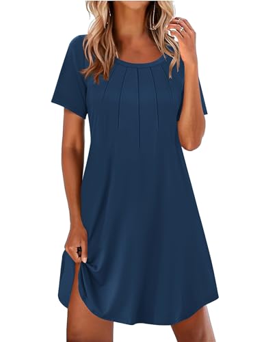 Ekouaer Nightgowns for Women Pleated Nightshirts Short Sleeve Sleepshirts Crew Neck Sleepwear Soft Night Gown Sleepdress Dark Blue XX-Large