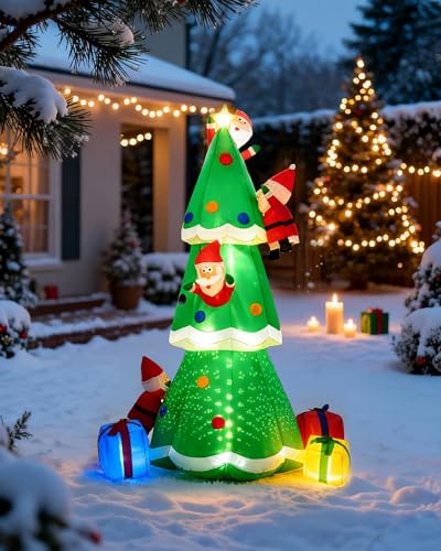 kurtmark 8FT Inflatable Christmas Tree with LED Lights, Blow Up Christmas with Climbing Santas, Outdoor Yard and Indoor Holiday Decor for Patio, Garden, Lawn