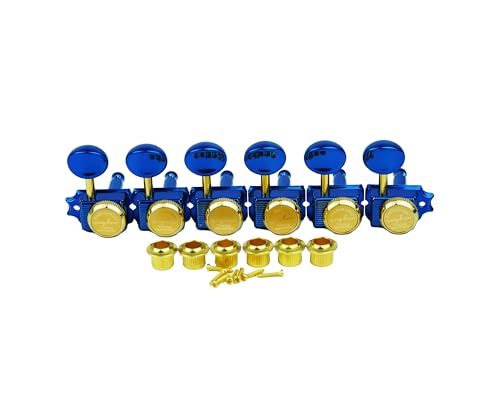 Guyker 6 Inline Vintage Guitar Lock String Tuners – Locking Tuning Key Pegs Machine Heads Replacement Parts for ST TL Style Electric, Folk or Acoustic Guitars – GK55SP, Blue+Gold