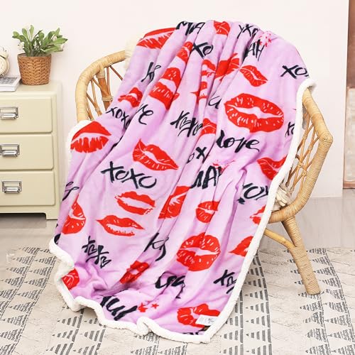 Catalonia Lips Print Sherpa Fleece Throw Blanket, Soft Mink Plush Couch Blanket, Fuzzy Fluffy Comfy Warm Throws, Comfort Caring Gift, 50x60 inches