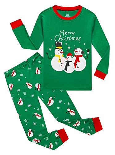KikizYe Little Girls Boys Long Sleeve Christmas Pajamas Sets 100% Cotton Pyjamas Toddler Kids Green Pjs Size 3T Snowman