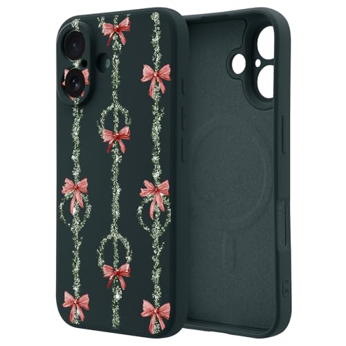 OFQKOAKS for iPhone 15 Case Compatible with MagSafe,Cute Christmas Bow Garland Magnetic Phone Case,Soft Black Liquid Silicone Slim Fit Protective Cover for Women Girls