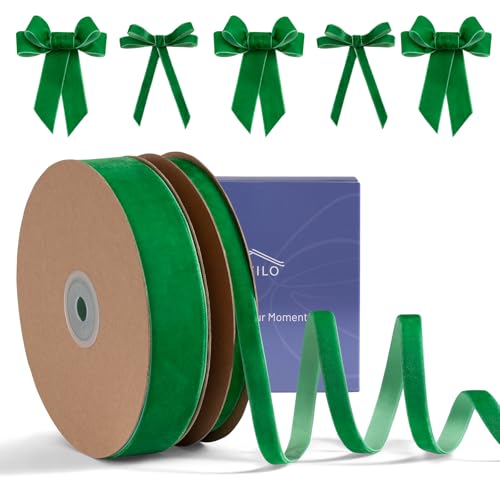 Green Velvet Ribbon 30 Yd, FAKILO Ribbon Green Velvet Perfect for Christmas Tree, Wreath, Gift Wrapping, Bows, Flower Bouquet, Wedding Home Decor, 2 Size (1 Inch and 3/8 Inch)